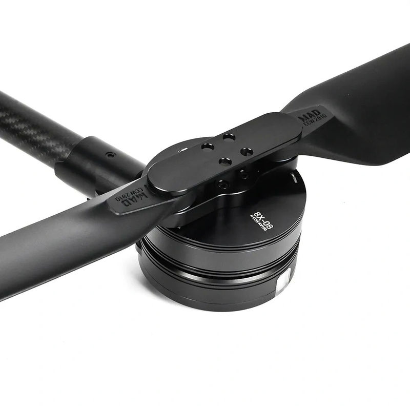 The 8X-10 is a tuned propulsion system designed for use in industrial multirotor applications(mapping,aerial ,inspection,Firefghting,defense,military,search and rescue ,and more).lt is compatiblewith 30mm(with adapter to 28mm) carbon arm tubes. it features MAD M8C10 motor, 60A14S FOC ESCand Havoc AW 2810 polymer propellers, together providing 6.6lbs (3kg) to 8.8lbs (4kg) per rotor ofrated load capacity.